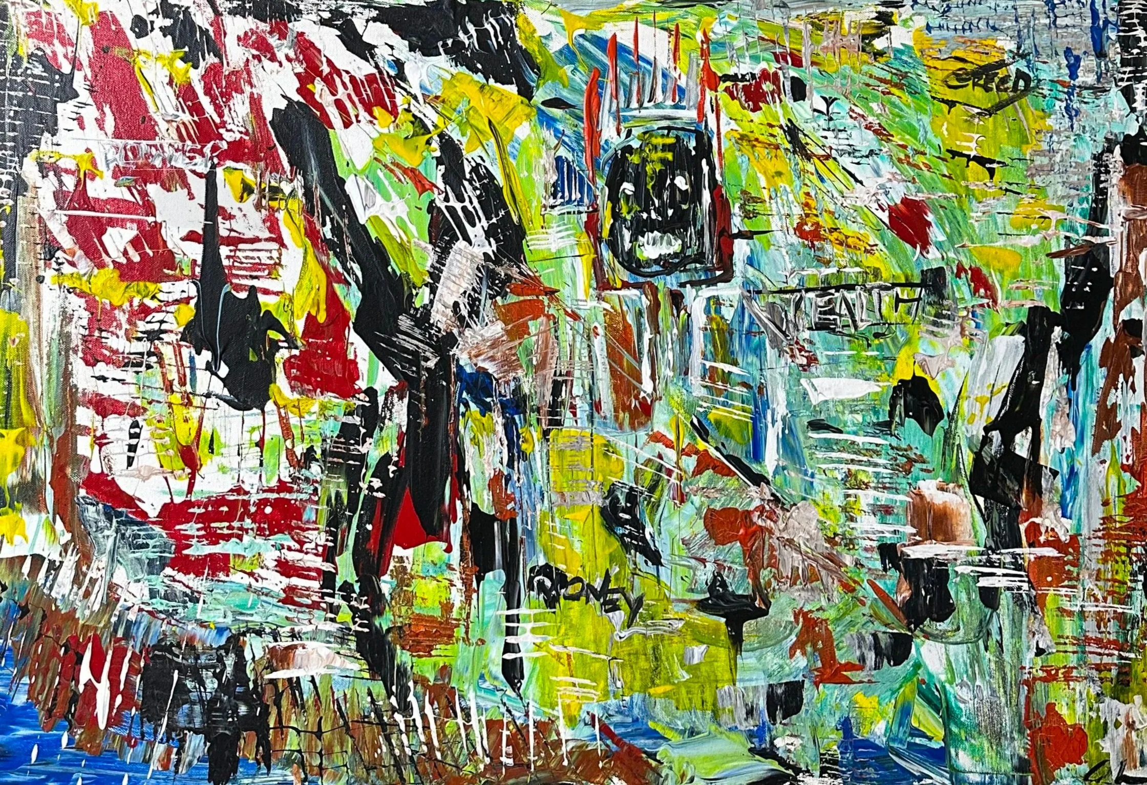 The self-proclaimed “Artistic Anomaly”, Amanda Sanders’ love for art began at a young age and was formally nurtured through early training at her school’s Visual and Performing Arts program for Fine Art. Her work can be described as vibrant, abstract expressionism with lyrical, gestural movement, defined by fluid brushstrokes and richly layered color fields that emphasize motion and emotional rhythm over fixed form. Her bold, high-contrast palette creates energy and visual tension, while overlapping marks and drips reflect spontaneity and intuition.